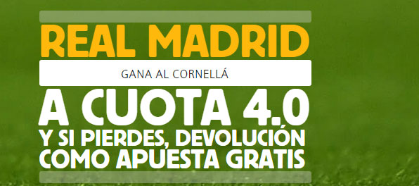 Mañana en el estadio Power8 de Cornellà, se enfrentarán el Cornellà, equipo de 2ªB, frente al Real Madrid. La cuota por la victoria del conjunto blanco es 1.04, pero si te registras en Betfair podrás apostar a la victoria del Real Madrid a cuota 4. En este post te explicamos qué debes hacer.