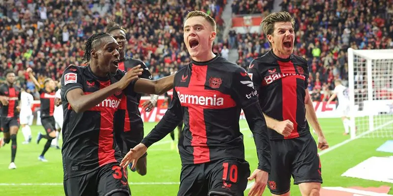 Los jugadores del Bayer Leverkusen celebran un gol marcado por Florian Wirtz contra el Friburgo (Foto: eurosport.de)