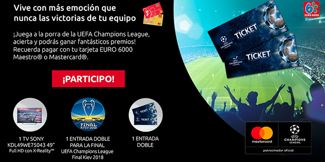 Hoy os hablamos de una Porra en la que podéis participar completamente gratis, cortesía de Mastercard, Patrocinador Oficial de la UEFA Champions League. Si sueles pronosticar correctamente los resultados de los partidos de esta competición, este es un evento ideal para ti. Si aciertas cómo quedarán los partidos de vuelta de los Cuartos de Final de la Champions te puedes llevar fantásticos premios.