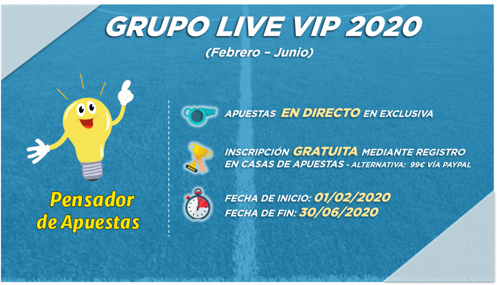 Abrimos un nuevo periodo de inscripción para el Grupo Live VIP, un grupo de apuestas en directo al que podrás acceder hasta el próximo 30 de junio con tan solo un registro.
