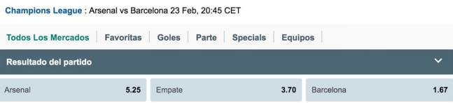 El FC Barcelona, que solo dejó escapar dos empates en la fase de grupos ante Roma y Bayer Leverkusen, se presenta el martes 23 de febrero en el Emirates Stadium de Londres para enfrentarse a un Arsenal que tuvo que sufrir de lo lindo para llegar a estos octavos de final, haciendo gala de un juego irregular, compaginando grandes partidos con decepcionantes derrotas.
