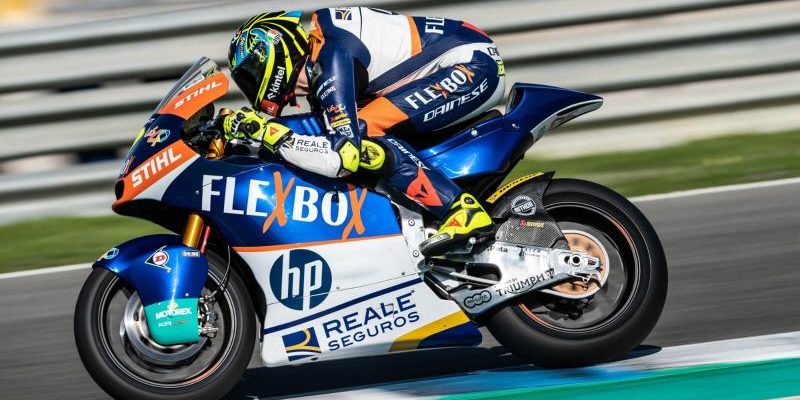 Lorenzo Baldassarri pilota una Kalex, que esta siendo la moto que mejor rendimiento esta teniendo este fin de semana cuando cae el sol y baja la temperatura de pista, mientras vemos que la Speed up de Canet y la del resto de pilotos que la llevan, están teniendo un mejor rendimiento en las sesiones libres con una temperatura más alta.