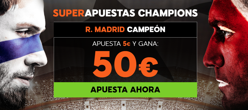 Apuesta 5€ por la victoria del Real Madrid y gana 50. Solo válido para nuevos usuarios que se registren ahora a través del banner que encontrarás a continuación