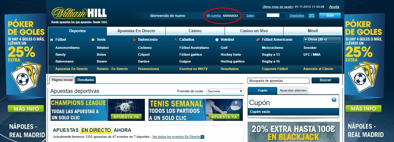 Alternativa – Si ya tienes cuenta en William Hill