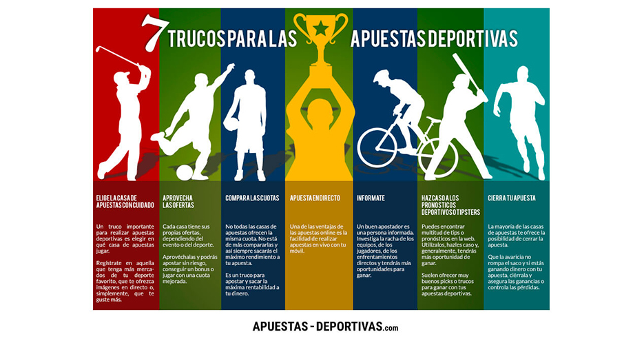 Os dejamos a continuación una serie de consejos que os ayudarán a tener una mayor probabilidad de éxito en el mundo de las apuestas deportivas, desarrollando los 7 acertados trucos que se citan en la infografía publicada en la recién lanzada web de Apuestas-Deportivas.com.